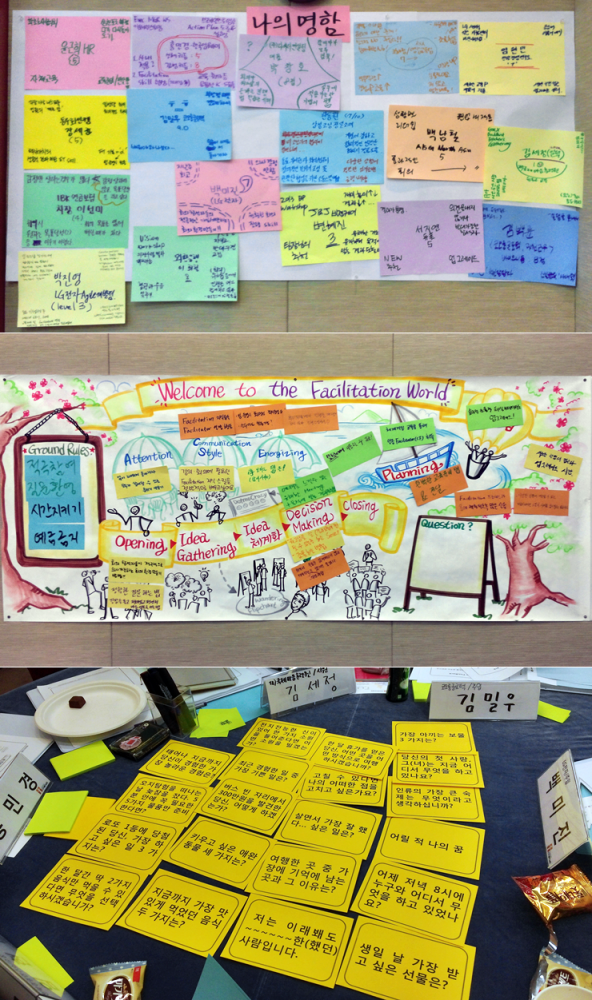 업무 상 사람들을 많이 만나게 되고 회의에 참석하는 일이 잦아 최근 1~2주 동안 사내, 사외 과정으로 Facilitation 교육을 들었습니다.