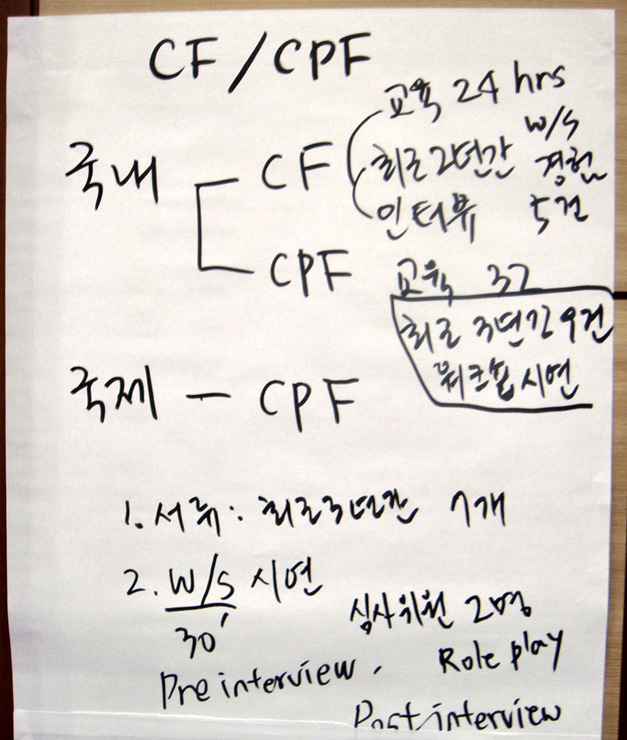 사외 과정은 인피플컨설팅에서 진행되는 3일짜리 퍼실리테이터 양성과정을 수강했습니다. 퍼실리테이션 분야에서 유명하신 분들께서 직접 과정을 진행하며 3일동안 3인의 남녀 퍼실리테이터가 돌아가면서 진행을 하는데 확실히 남자와 여자의 진행 방식이나 강점 요소에 있어 차이가 많이 느껴졌습니다. 저한테는 감성적인 부분과 이성적인 부분이 가장 큰 차이로 느껴졌는데, 퍼실리테이션이 필요한 분야는 다양하니까 자신의 강점이 뭔지 알고 그 강점을 살릴 수 있는 분야를 찾는 것도 스킬 업의 한가지 방법이 될 수 있겠네요.