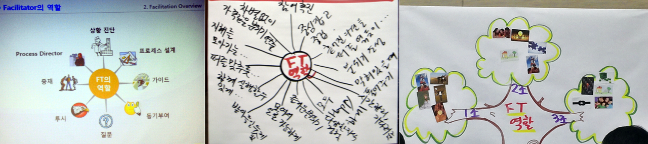 사외 과정은 인피플컨설팅에서 진행되는 3일짜리 퍼실리테이터 양성과정을 수강했습니다. 퍼실리테이션 분야에서 유명하신 분들께서 직접 과정을 진행하며 3일동안 3인의 남녀 퍼실리테이터가 돌아가면서 진행을 하는데 확실히 남자와 여자의 진행 방식이나 강점 요소에 있어 차이가 많이 느껴졌습니다. 저한테는 감성적인 부분과 이성적인 부분이 가장 큰 차이로 느껴졌는데, 퍼실리테이션이 필요한 분야는 다양하니까 자신의 강점이 뭔지 알고 그 강점을 살릴 수 있는 분야를 찾는 것도 스킬 업의 한가지 방법이 될 수 있겠네요.