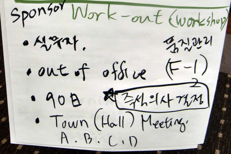 - Sponsor(최종 의사 결정자)가 Kick-off speech만 하고 나가서 안건이 도출된 후에 다시 들어와서 즉석에서 의사결정